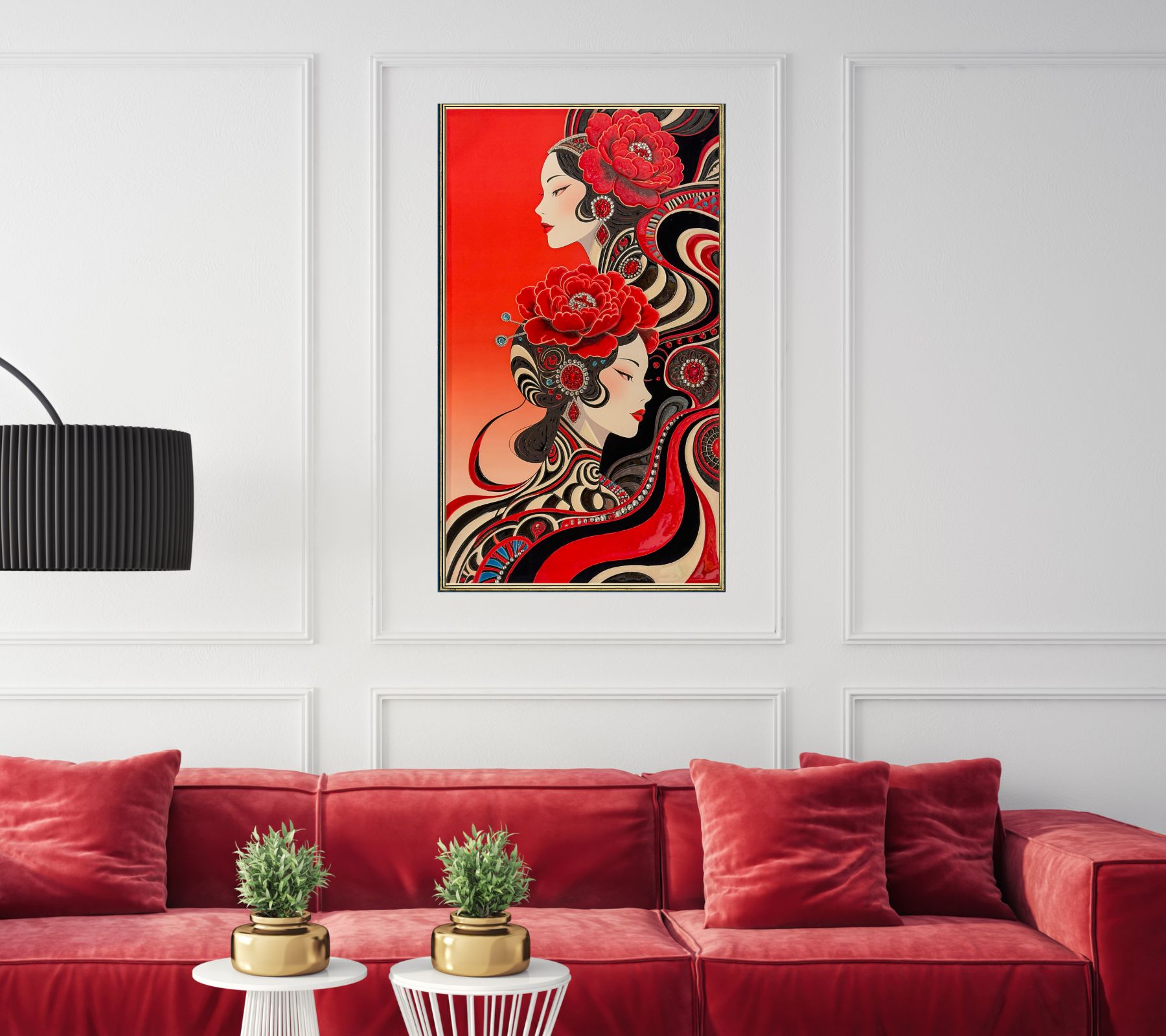 Bloom celebrates feminine duality through mirrored profiles and flourishing floral forms. Flowing lines and layered resin details weave together strength and softness, while vibrant red tones evoke passion, vitality, and renewal. The composition moves with rhythmic elegance, capturing a moment where inner growth transforms into radiant presence.