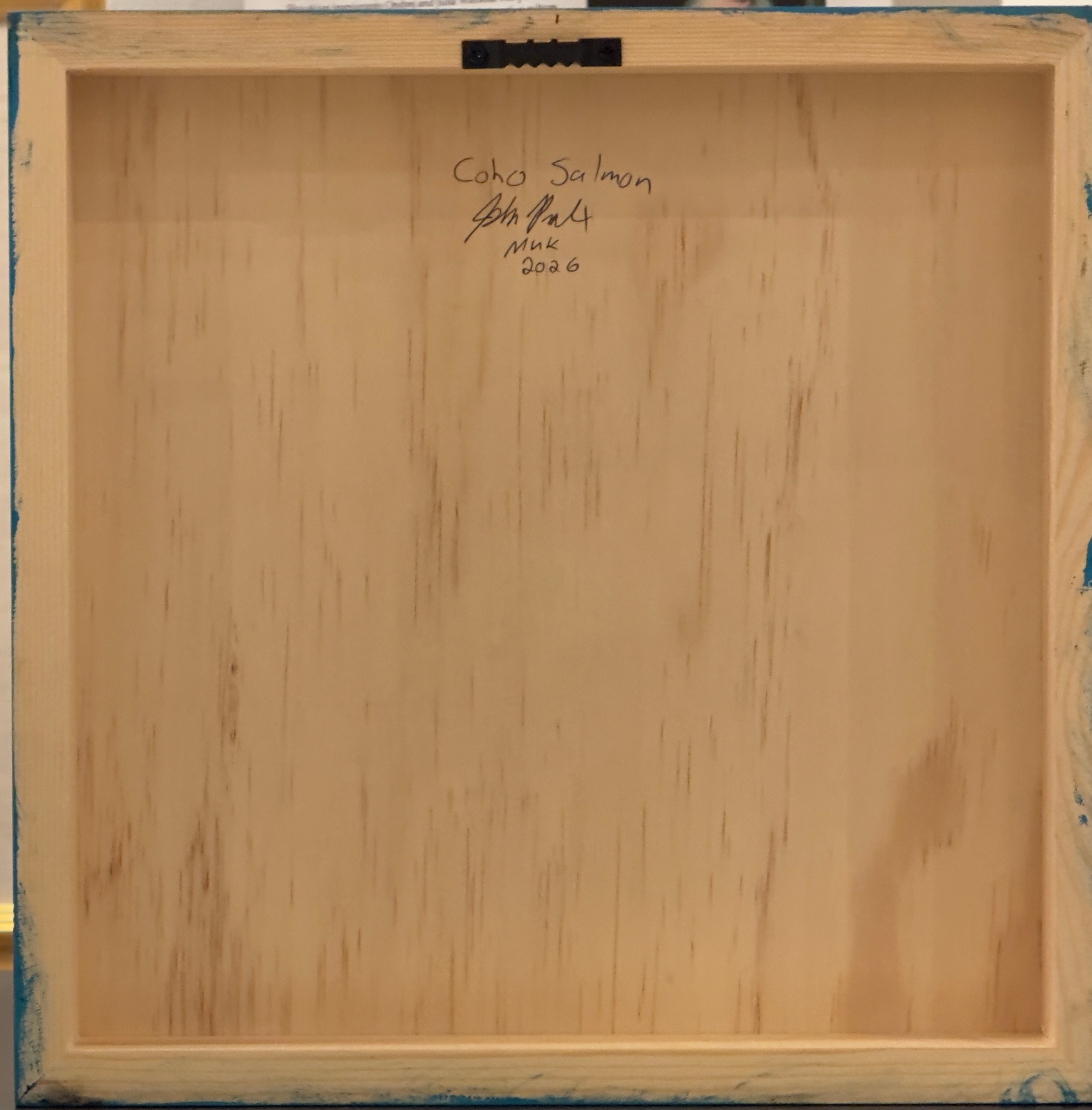 Coho Salmon presents a powerful symbol of resilience and return, capturing the enduring journey of the salmon as it moves against the current. The upward motion of the figure conveys determination, instinct, and the cyclical nature of life.