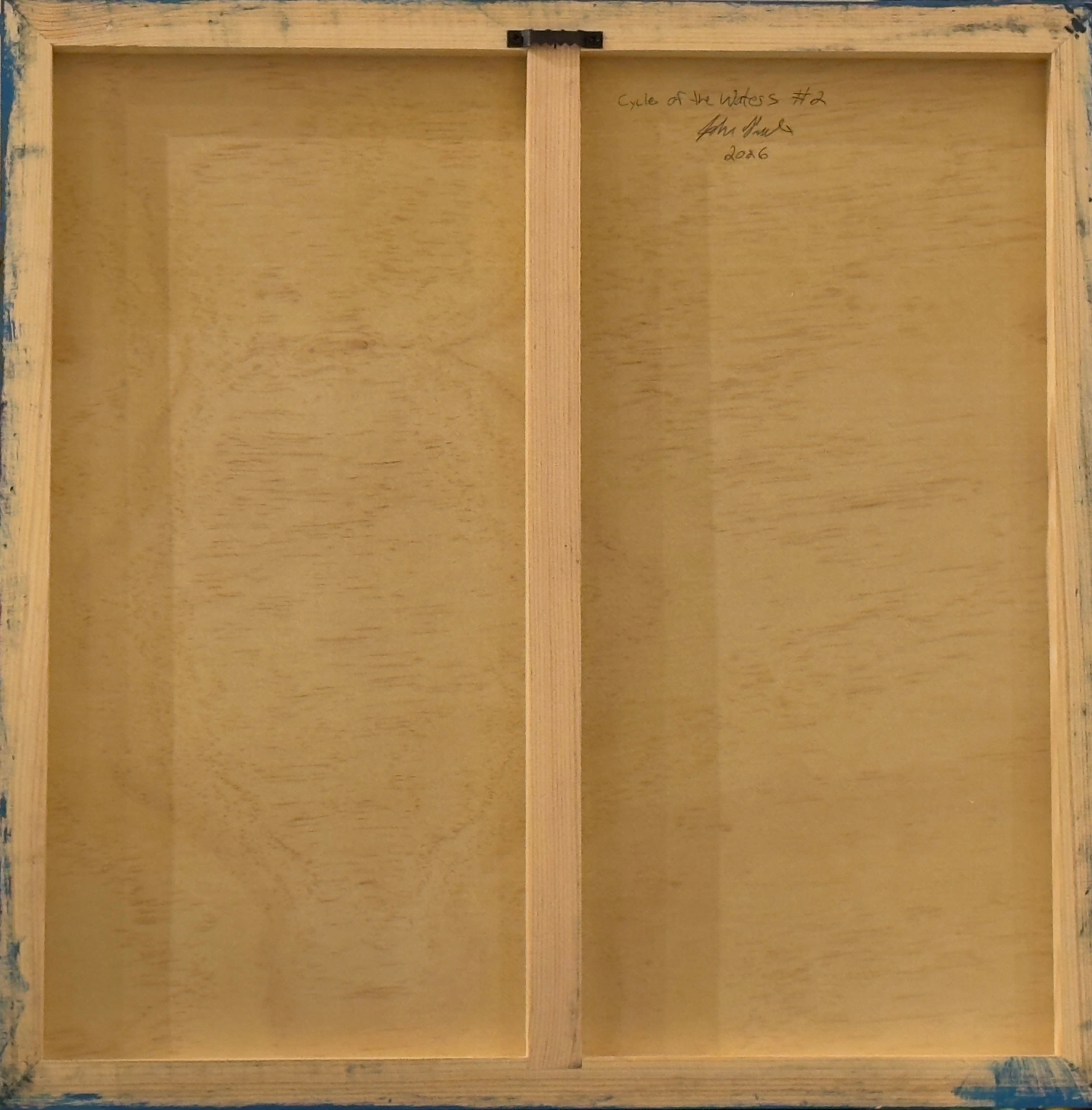 Cycle of Waters presents a circular composition where fish move in continuous motion around a central turtle and bird, forming a powerful symbol of life cycles and ecological balance. The rotating arrangement suggests the flow of water, time, and energy—an ongoing system of renewal and interdependence.