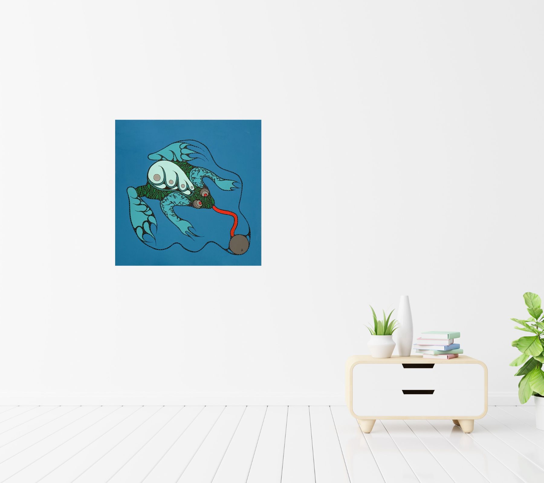 Executed in Johnny Mukwa’s Woodland style, the work features bold outlines and intricate internal patterning that bring vitality to the form. Both symbolic and visually dynamic, this piece speaks to transformation, intuition, and healing—making it especially compelling for collectors drawn to meaning-rich contemporary Indigenous art.