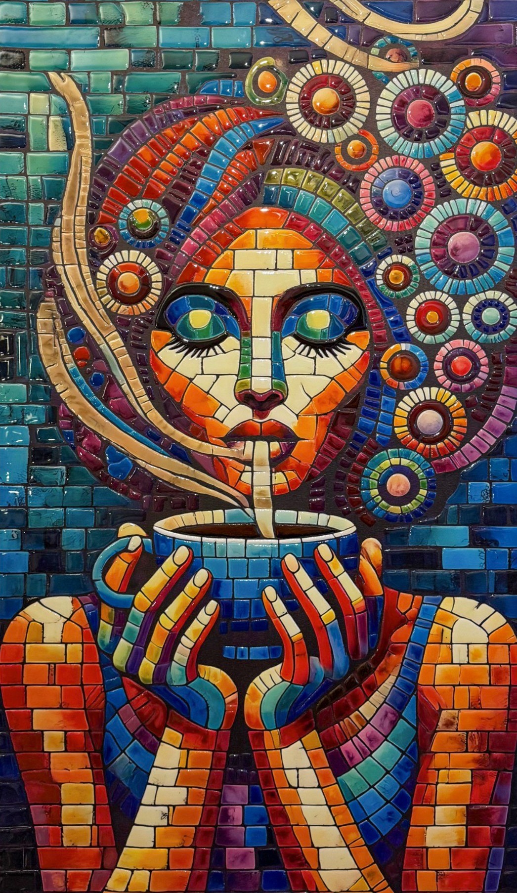 Meditation in Color expresses inner stillness through a vibrant mosaic of form and hue. The centered figure, rendered in rhythmic blocks of color, suggests focused breath, mindful presence, and emotional balance. Flowing lines and layered resin textures guide the eye inward, where color becomes a language of calm, healing, and quiet clarity.