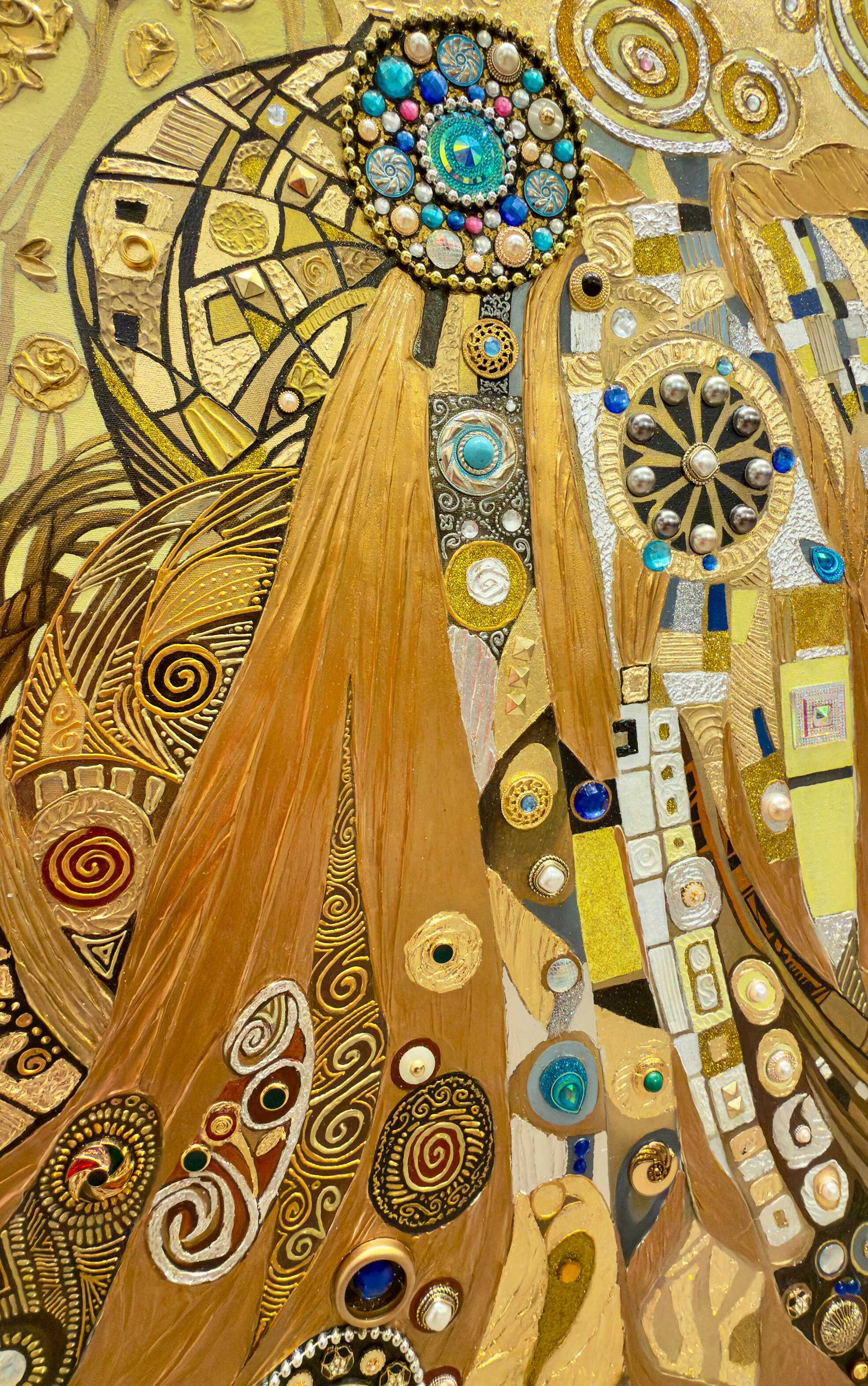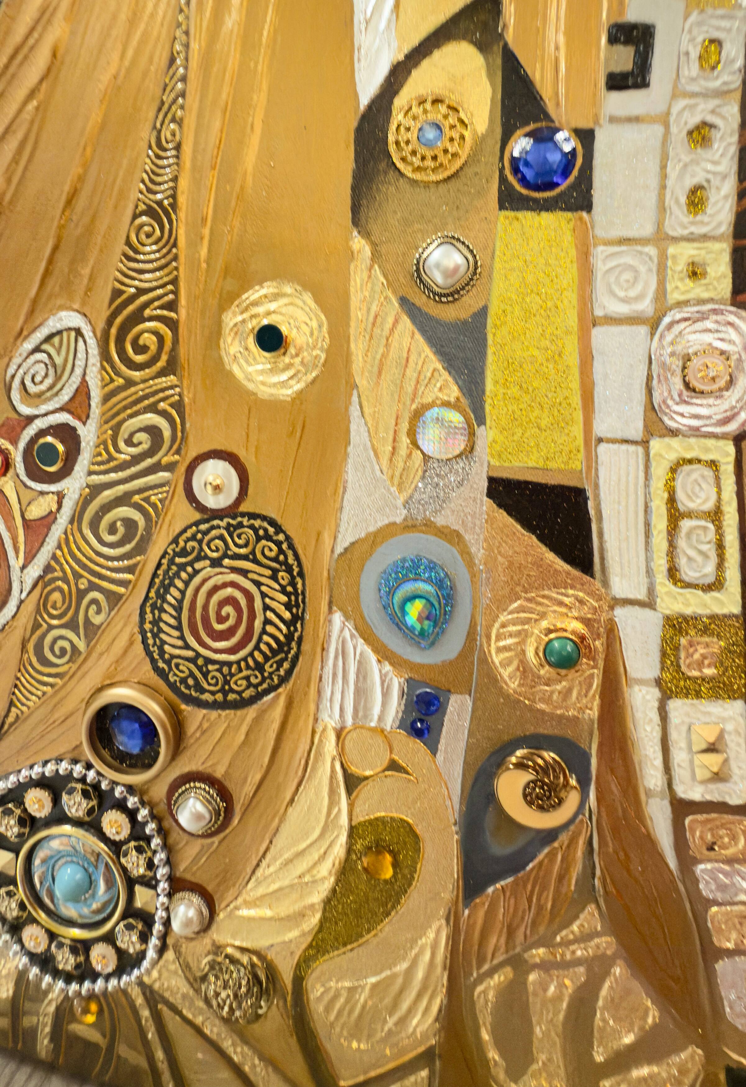 Replica Painting, Oil, Gold leaf, Silver leaf, Swarovski Crystals, Rhinestones and Copper Leaf on Canvas (Commission)