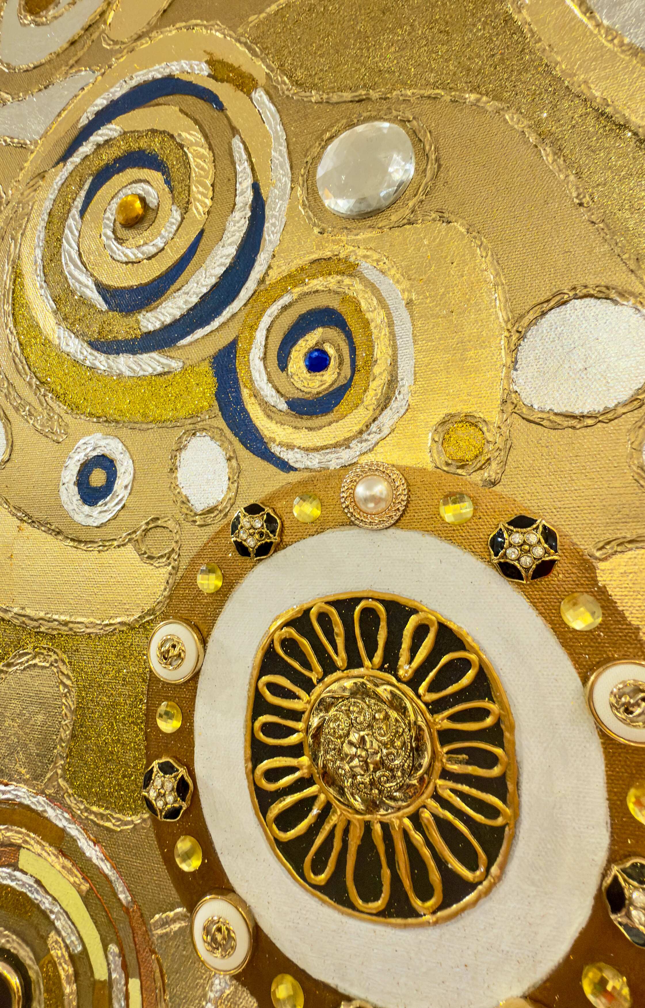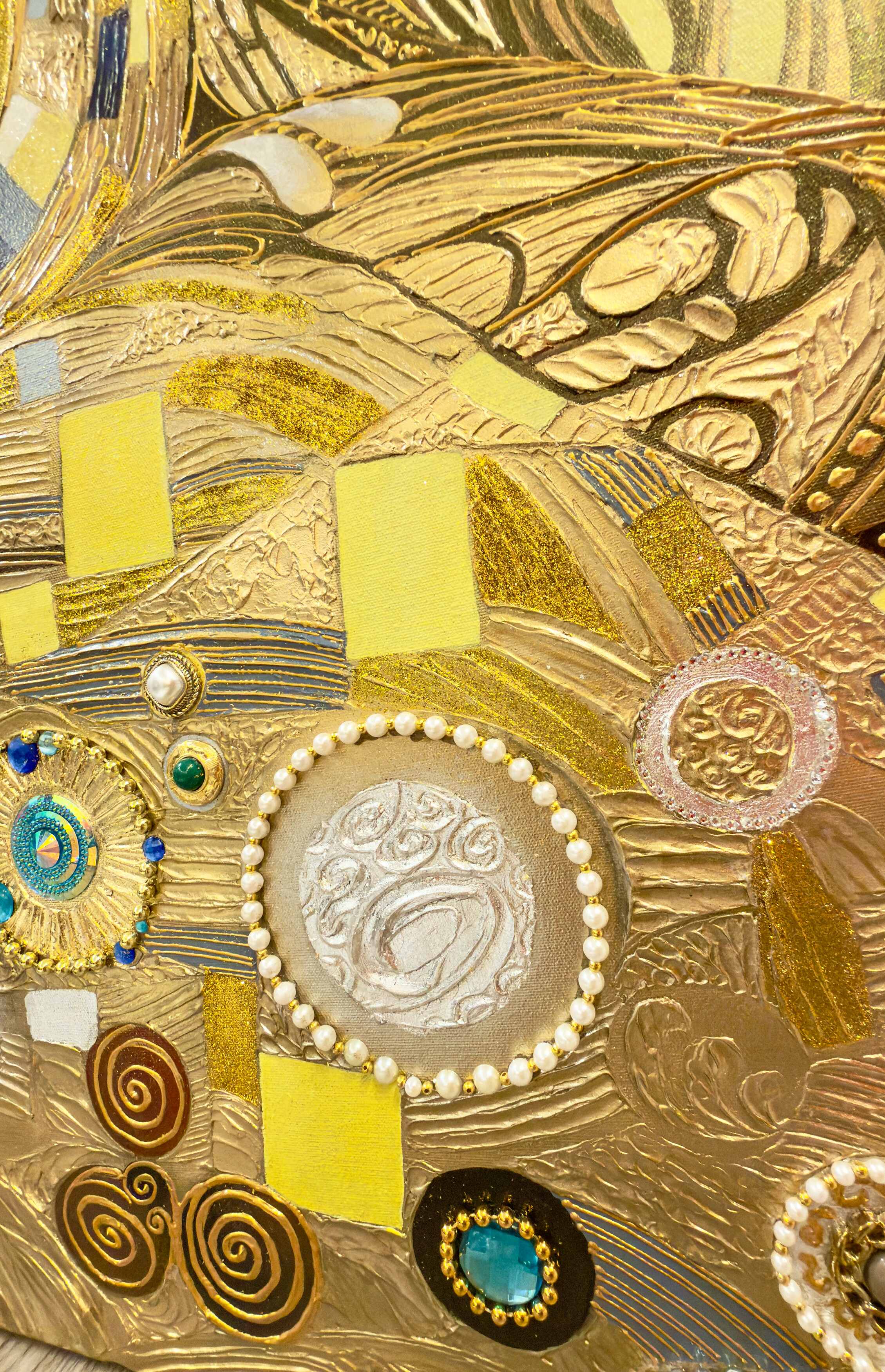 Replica Painting, Oil, Gold leaf, Silver leaf, Swarovski Crystals, Rhinestones and Copper Leaf on Canvas,