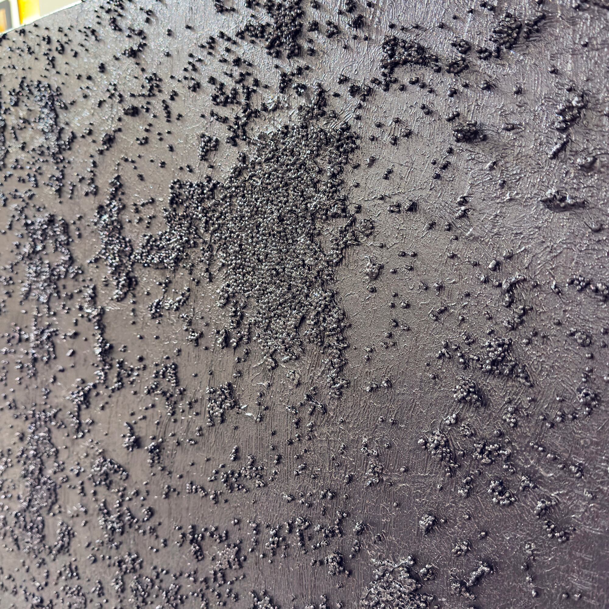 他完全用手工创作,不使用画笔或刀具,在湿画布上分层涂色,并通过“洗掉”颜料来操控画面。有时,他还会加入沙子(在他最近的作品中,还加入了咖啡渣)。